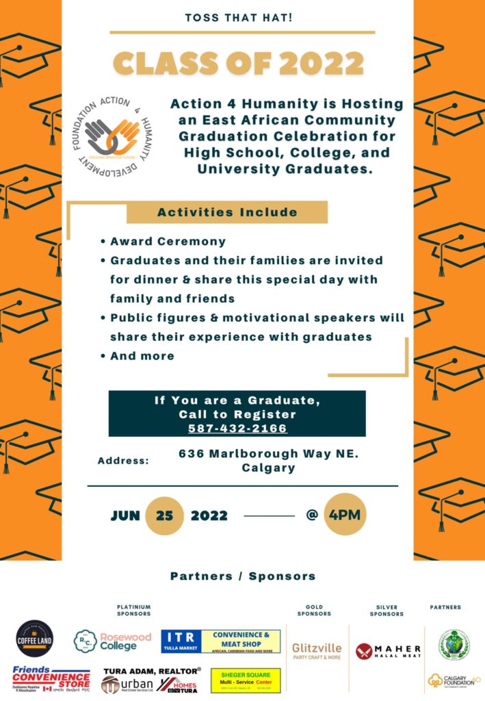 Class of 2022 Action 4 Humanity is hosting an east African Community graduation celebration for high school, college and university graduates.